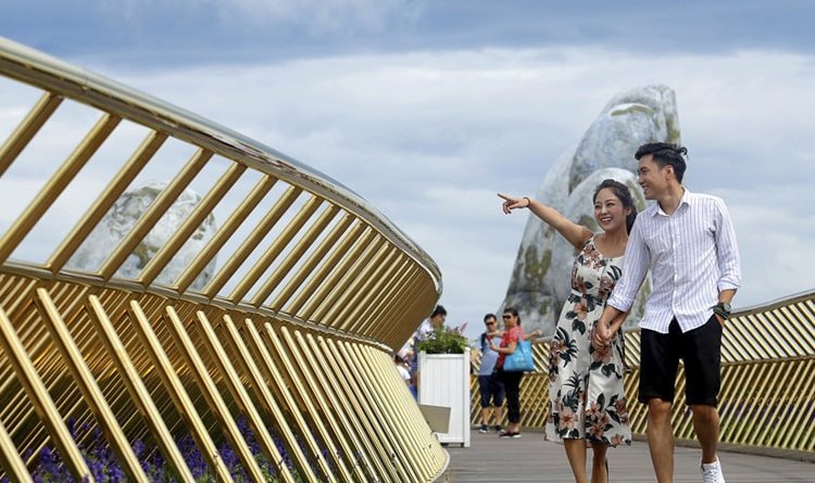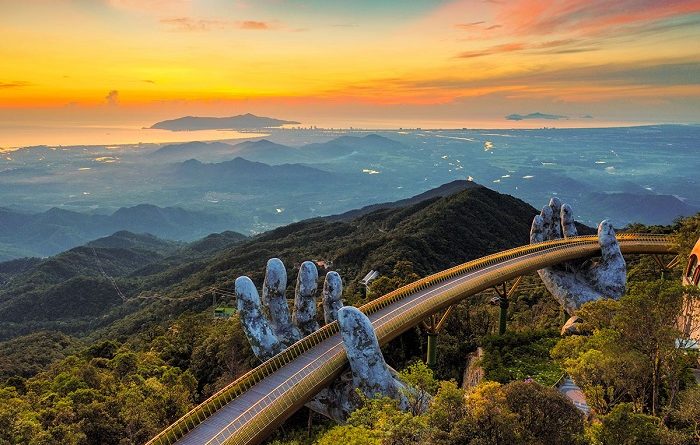 Cầu Vàng là một điểm tham quan kiến trúc mới của Bà Nà hills– với cây cầu được nâng đỡ bởi hai bàn tay khổng lồ. Đây là một địa điểm không thể bỏ qua khi bạn đến du lịch Đà Nẵng. Ngắm hoàng hôn ở Cầu Vàng mang đến cho bạn những giây phút tận hưởng khung cảnh tuyệt vời xung quanh trên đỉnh Bà Nà Hills. Hãy tận hưởng cảm giác đứng trên cầu, một khung cảnh thiên nhiên hùng vĩ sẽ hiện ra trước mắt với mây trắng và núi non mờ ảo trong sương mù.