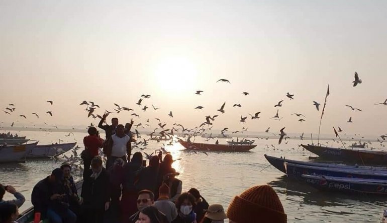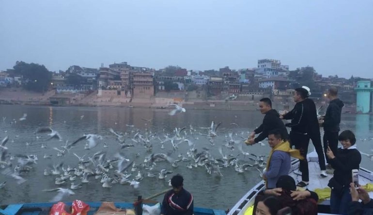 Tối đoàn đi thuyền trên sông Hằng . Đoàn ăn tối, nghỉ đêm tại Varanasi