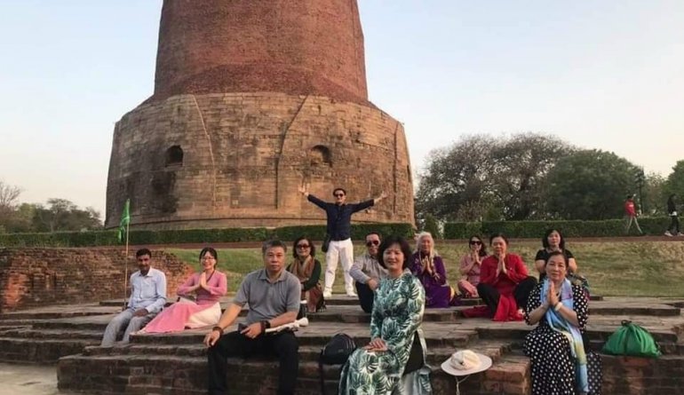 - Tham quan đại tháp Dhamekh - ngôi tháp này được vua A Dục xây vào khoảng thế kỷ thứ 3 trước Công Nguyên để ghi nhận nơi Đức Phật lần đầu tiên giảng bài Pháp Tứ Diệu Đế cho 5 anh em nhà Kiều Trần Như .