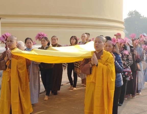Sau bữa sáng, đoàn .đảnh lễ chiêm bái thánh tích Đệ Tứ Đại Động Tâm - Nơi Đức Phật nhập Niết Bàn –