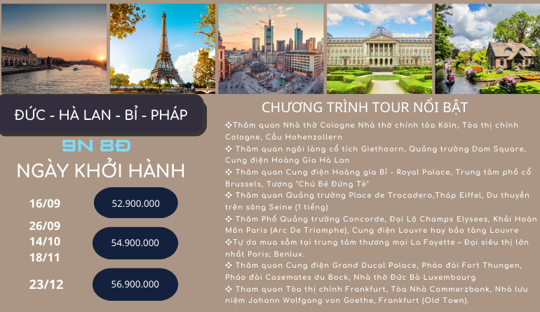 ⛳ Địa Điểm: ĐỨC – HÀ LAN – BỈ – PHÁP