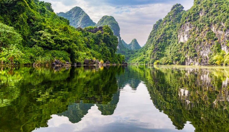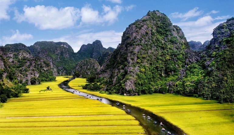 - 13:30: Leave for the Trang An Grottoes, an out-standing natural beauty of majestic limestone massif at 20 square kilometers rise dramatically out from rice paddy fields. Deep into the linked chains of towering mountains are pristine places of mystical valleys, numerous fresh water ponds, and jungle.
