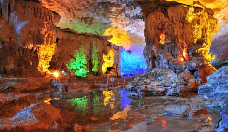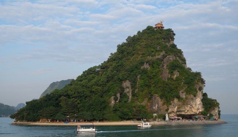 - 13:45: Arrive in Bo Hon archipelago, where you visit Surprising Cave to see a lot of stalagmites and stalactites with different shapes of sea life, then kayak or bamboo boat in Luon Cave to discover the beautiful lagoon. Visit Titov Island with its sandy beach adjacent to the towering limestone mountain with an excellent backdrop of the Bay, and climb up Titop Peak for a panoramic view of the bay like paradise.